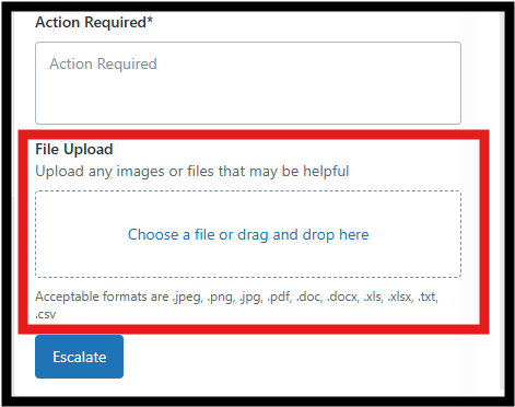 We’re excited to share that a new feature has been added to the Escalations App. Agents now have the ability to upload photos and files directly to support their escalation submissions.