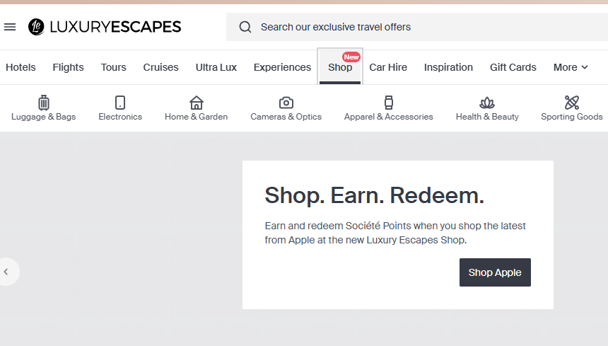 We’re excited to announce the soft launch of LE Shop, a new Luxury Escapes vertical. LE Shop is a curated marketplace for high-end products where customers can use their Société Points or pay with cash. This is part of our ongoing effort to give members more ways to use their points and enjoy premium experiences.
