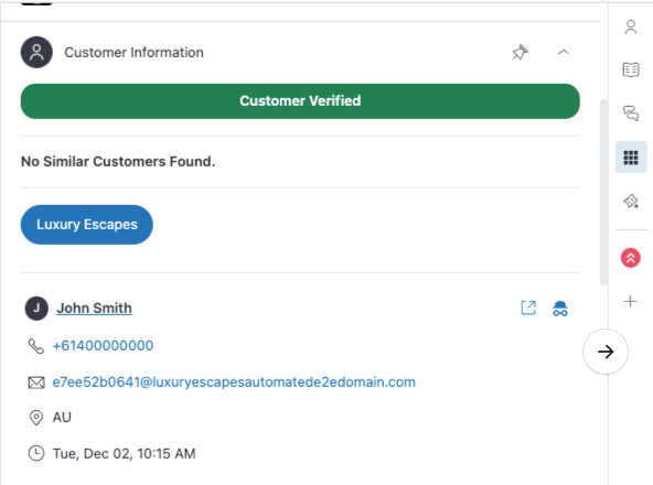 Open any ticket linked to a Voice Bot AI call and look in Customer Information app: